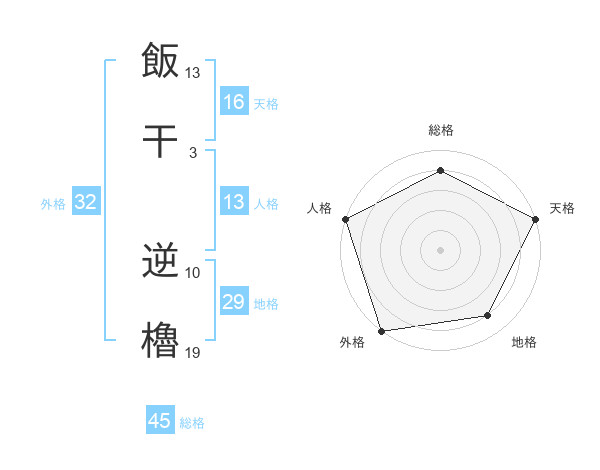 飯干 逆櫓さんを姓名の画数から五運を鑑定