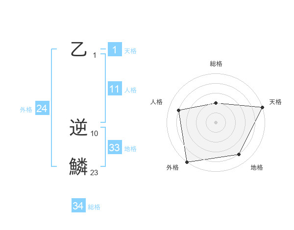 乙 逆鱗さんを姓名の画数から五運を鑑定