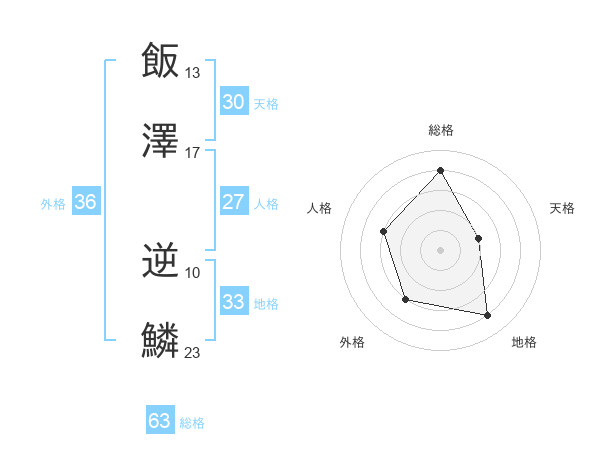 飯澤 逆鱗さんを姓名の画数から五運を鑑定