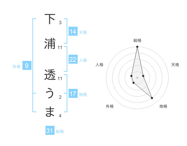 下浦 透うまさんを姓名の画数から五運を鑑定