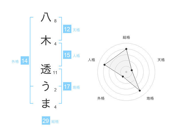 八木 透うまさんの総格は29画の4点!