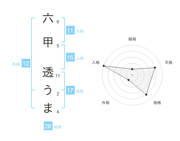 六甲 透うまさんの総格は28画の1点!