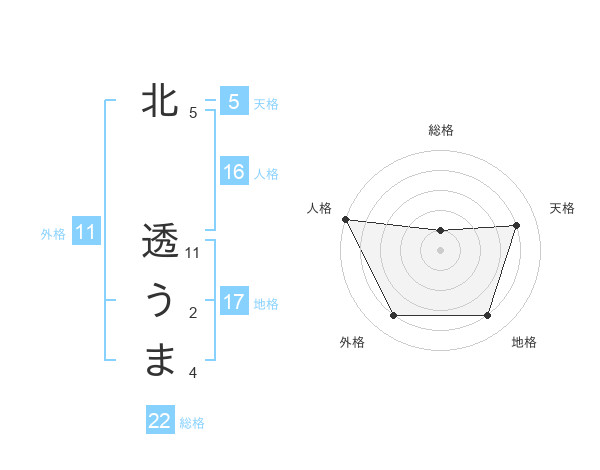北 透うまさんの天格は5画の4点!