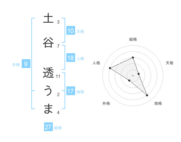 土谷 透うまさんの総格は27画の3点!