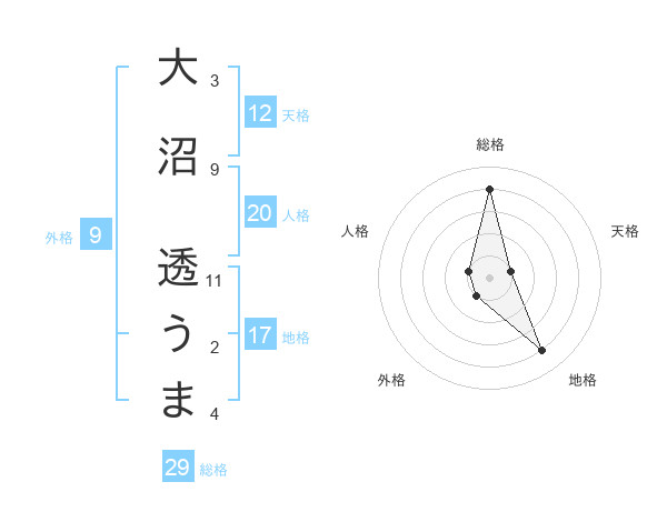 大沼 透うまさんを姓名の画数から五運を鑑定