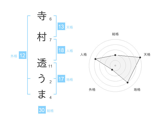 寺村 透うまさんを姓名の画数から五運を鑑定