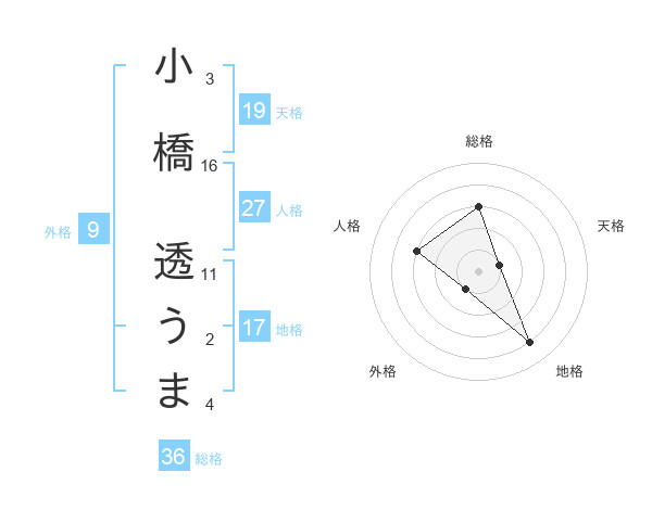 小橋 透うまさんを姓名の画数から五運を鑑定