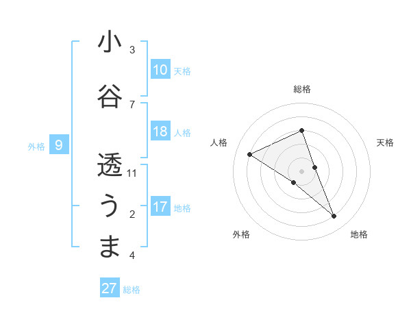 小谷 透うまさんの総格は27画の3点!