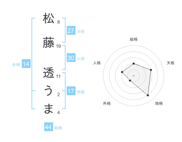松藤 透うまさんを姓名の画数から五運を鑑定