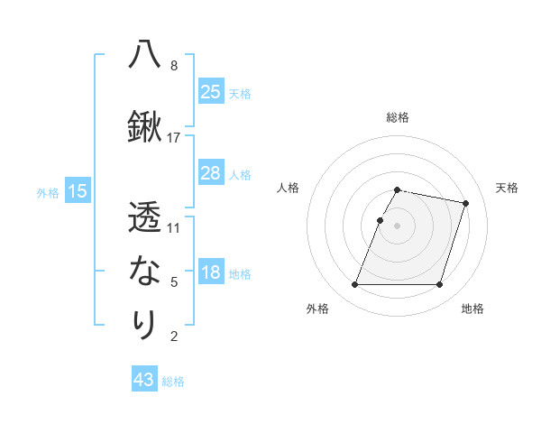 八鍬 透なりさんを姓名の画数から五運を鑑定
