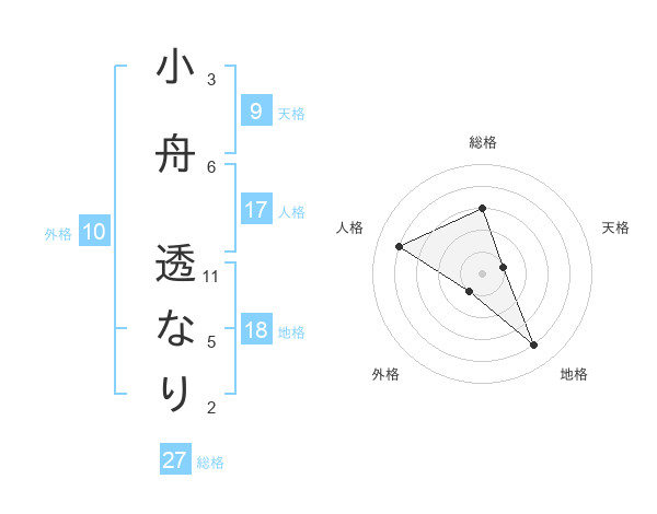 小舟 透なりさんの総格は27画の3点!