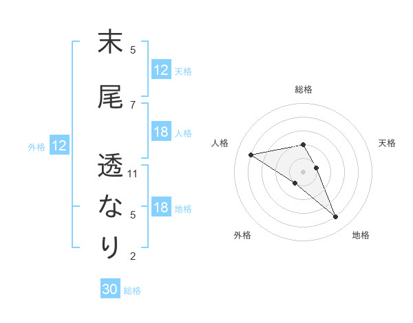 末尾 透なりさんの天格は12画の1点!