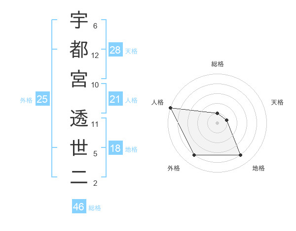 宇都宮 透世二さんの天格は28画の1点!