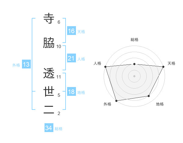 寺脇 透世二さんを姓名の画数から五運を鑑定