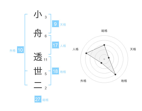 小舟 透世二さんの総格は27画の3点!
