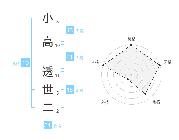 小高 透世二さんの総格は31画の5点!