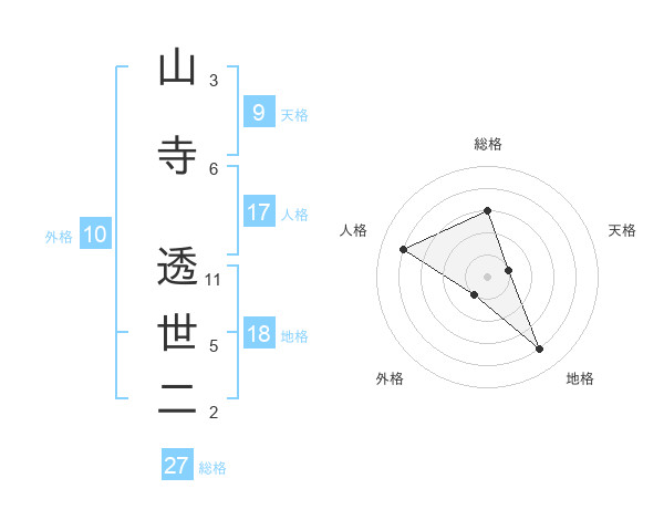 山寺 透世二さんの総格は27画の3点!