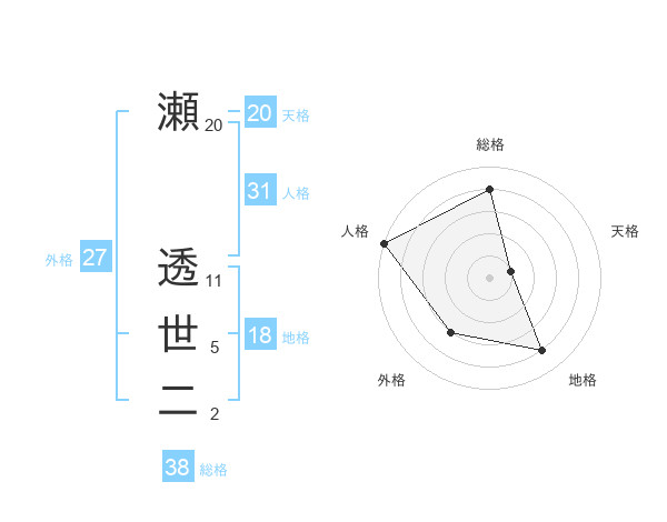 瀬 透世二さんの天格は20画の1点!