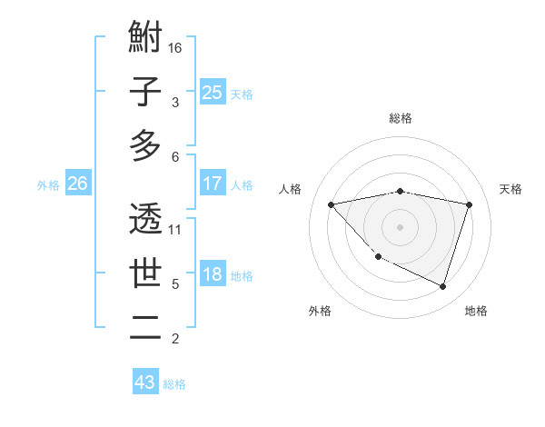 鮒子多 透世二さんを姓名の画数から五運を鑑定