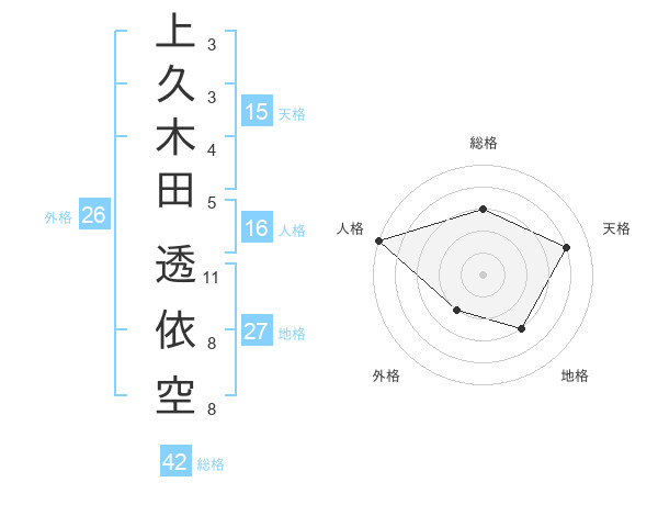 上久木田 透依空さんを姓名の画数から五運を鑑定