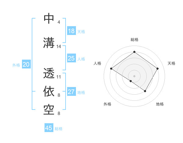 中溝 透依空さんの天格は18画の4点!