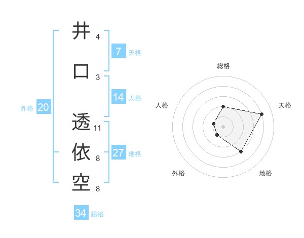 井口 透依空さんの天格は7画の4点!