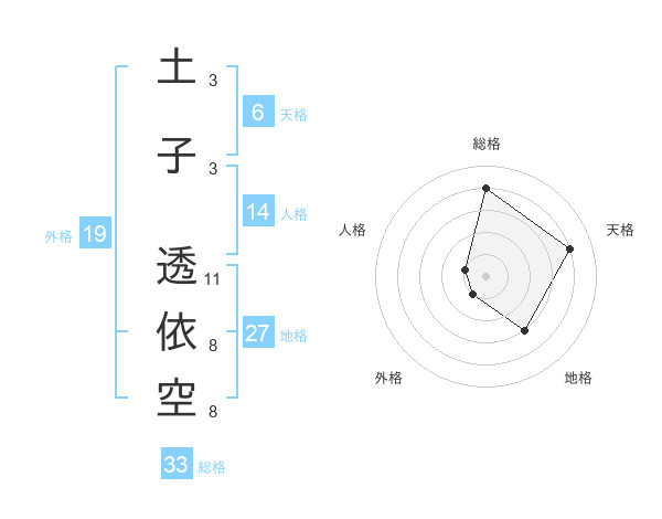 土子 透依空さんの総格は33画の4点!