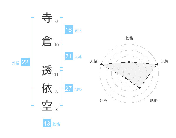 寺倉 透依空さんの天格は16画の5点!