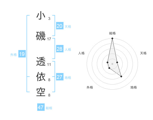 小磯 透依空さんを姓名の画数から五運を鑑定
