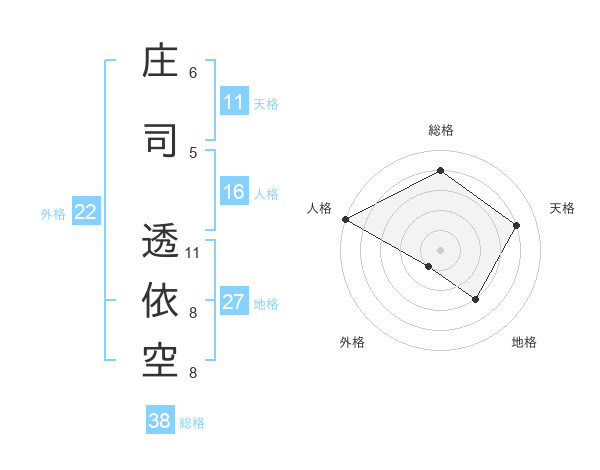 庄司 透依空さんの外格は22画の1点!