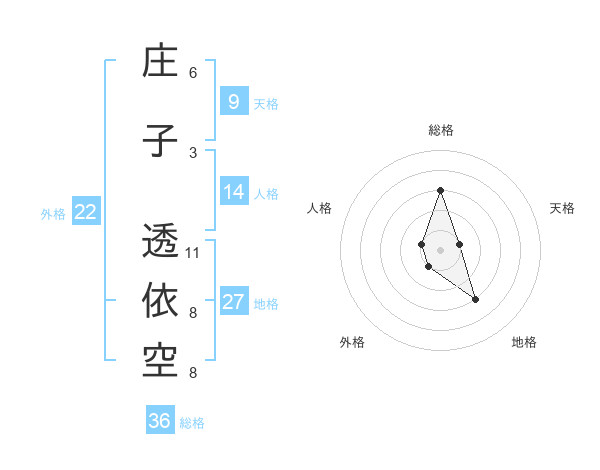 庄子 透依空さんの外格は22画の1点!