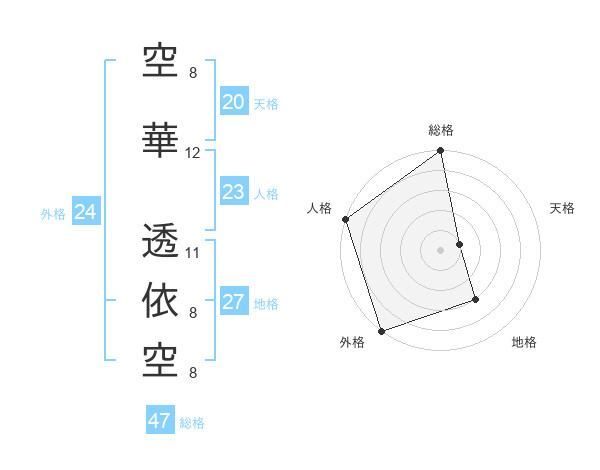 空華 透依空さんの総格は47画の5点!