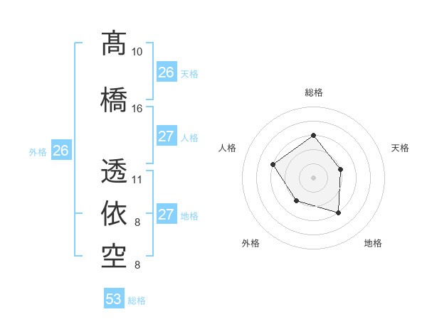髙橋 透依空さんを姓名の画数から五運を鑑定