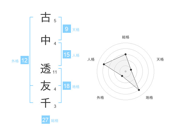 古中 透友千さんの総格は27画の3点!