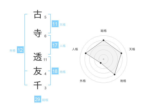 古寺 透友千さんを姓名の画数から五運を鑑定