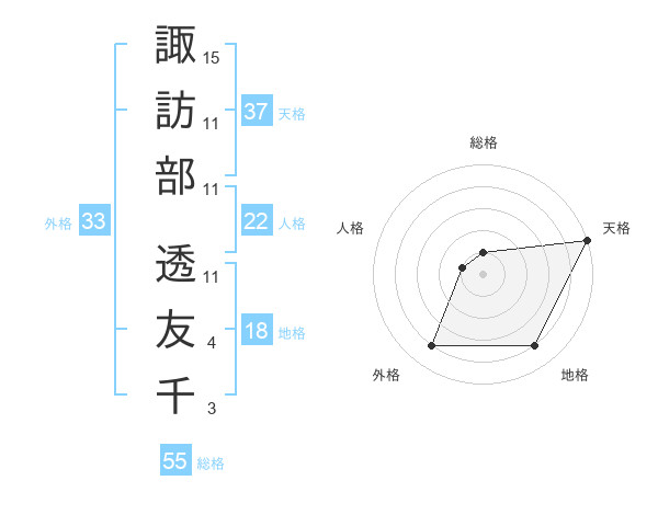 諏訪部 透友千さんの外格は33画の4点!