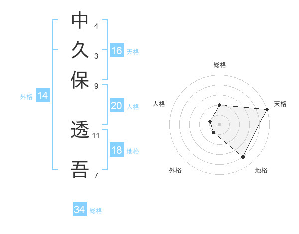 中久保 透吾さんの天格は16画の5点!