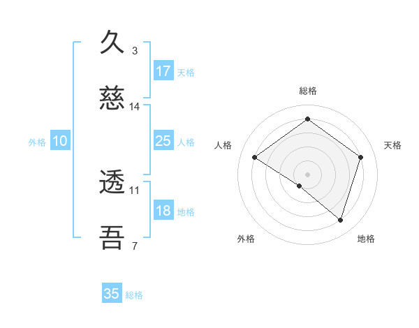 久慈 透吾さんを姓名の画数から五運を鑑定