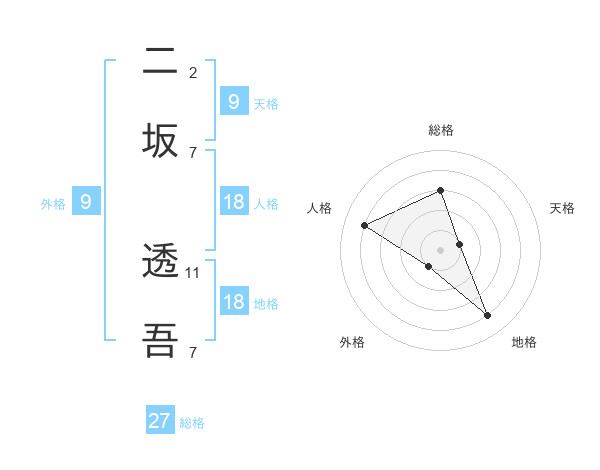 二坂 透吾さんの総格は27画の3点!