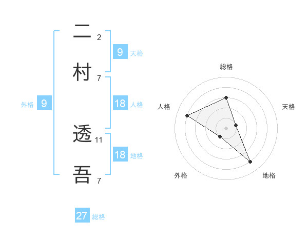 二村 透吾さんの総格は27画の3点!