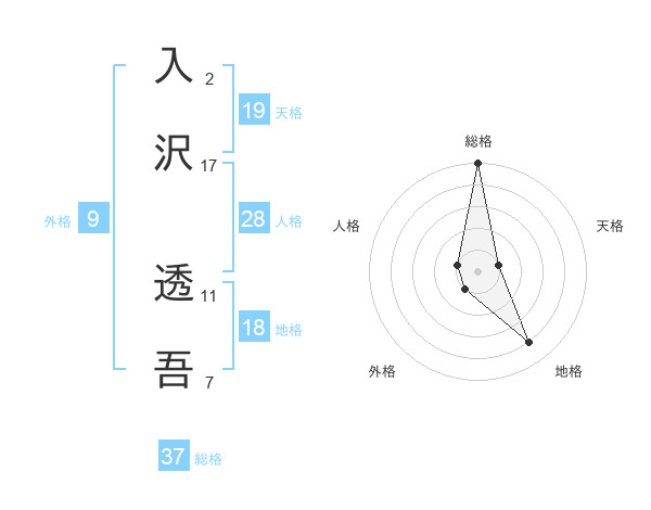 入沢 透吾さんの総格は37画の5点!