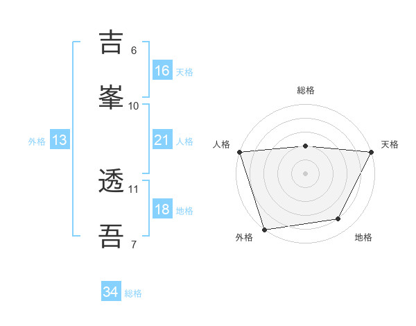 吉峯 透吾さんの天格は16画の5点!