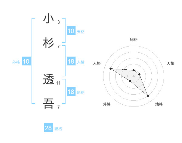 小杉 透吾さんの総格は28画の1点!