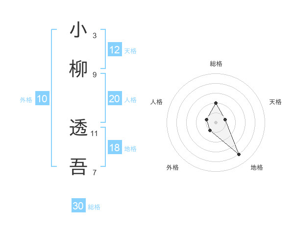 小柳 透吾さんを姓名の画数から五運を鑑定