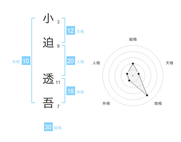 小迫 透吾さんを姓名の画数から五運を鑑定