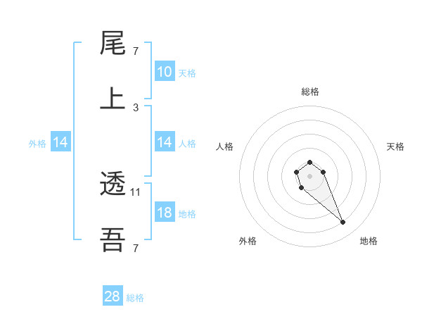尾上 透吾さんを姓名の画数から五運を鑑定