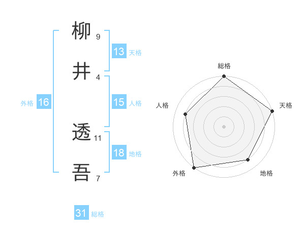柳井 透吾さんを姓名の画数から五運を鑑定