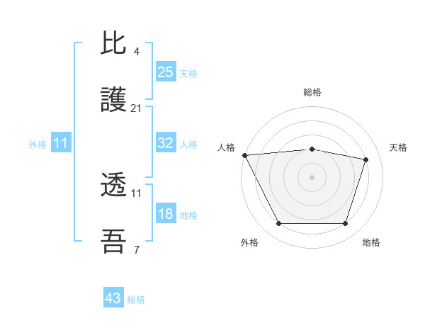 比護 透吾さんの外格は11画の4点!