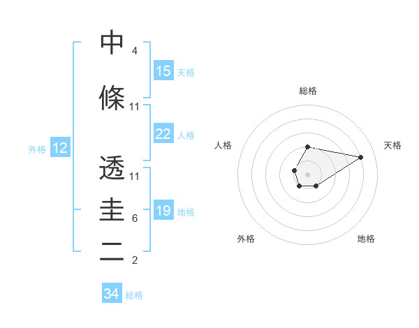中條 透圭二さんを姓名の画数から五運を鑑定
