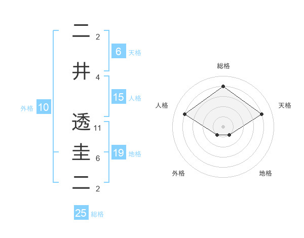 二井 透圭二さんの総格は25画の4点!